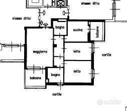 composto da ingresso nel soggiorno con balcone verandato, disimpegno doppi servizi uno con vasca ed uno con doccia, cucina abitabile con secondo balcone e due camere matrimoniali, l'immobile si presenta internamente in ottime condizioni!