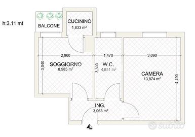 INTERNO: composto da ingresso nel disimpegno, soggiorno con cucinino e balcone, bagno finestrato e camera da letto.