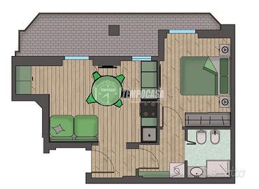 Fornitura aria condizionata in tutti gli ambienti: soggiorno, cucina e camera.