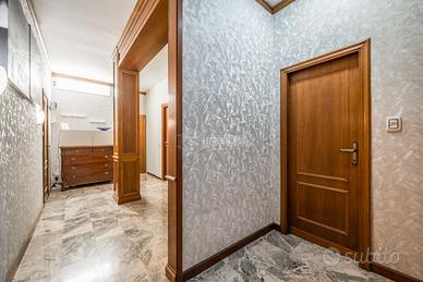 INTERNO: L'appartamento è composto da ingresso su disimpegno, soggiorno, cucina abitabile, quattro camere da letto e doppi servizi finestrati. L'immobile è dotato di infissi in triplo vetro pvc e riscaldamento centralizzato. Completa la proprietà cantina di pertinenza. L'immobile si presenta in ottimo stato interno, tutti gli spazi sono sfruttati al meglio, gode di una ottima luce grazie alla sua doppia esposizione.