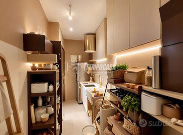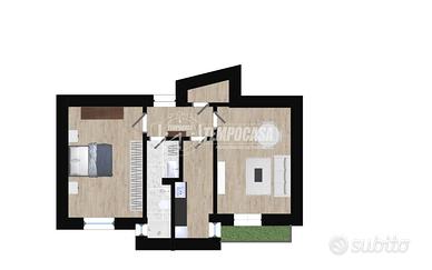 INTERNI: L'appartamento si apre su un disimpegno, un'accogliente zona giorno con balcone, una luminosa camera da letto, un cucinotto ed un ripostiglio. Completa la proprietà una cantina di pertinenza.