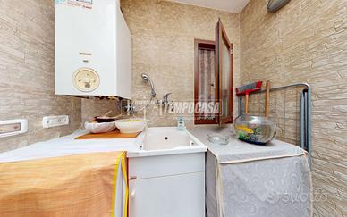 La distribuzione interna prevede una zona living ampia e accogliente, con cucina abitabile a vista, due camere da letto di comode dimensioni, un bagno finestrato, un pratico ripostiglio e un piccolo spazio esterno, attualmente adibito a lavanderia.