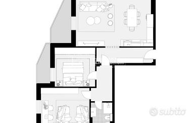 Due camere da letto, con ottime potenzialità di distribuzione degli spazi.