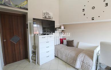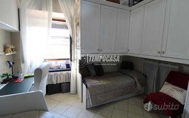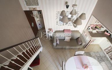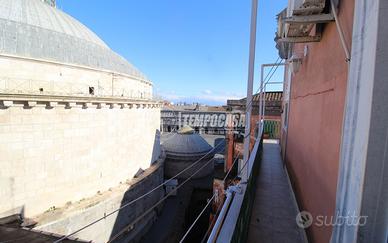 Varcata la soglia di ingresso, si ha subito dinnanzi una camera da letto a due posti, con finestra su Piazza del Plebiscito: quale vista migliore per leggere, studiare o rilassarsi! Procedendo, si accede alla zona living, accogliente e luminosa, completata da un angolo cottura costruito su misura per sfruttare tutti gli spazi disponibili. La luce che inonda l'ambiente proviene da un lungo balcone che culmina in una terrazzino, perfetto come postazione per godere dell'affaccio. Sulla destra del soggiorno è presente l'ampio bagno, con vasca e tutti i sanitari necessari, e finestra. In corrispondenza del bagno e dell'angolo cottura, è presente un soppalco con una cameretta singola e una camera matrimoniale, arricchita da travi d'epoca a vista.