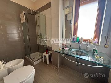 L'ingresso si apre su un ampio salone, raffinato e accogliente, ideale per chi desidera ambienti di rappresentanza. La zona notte comprende due camere da letto ben distribuite, mentre la presenza di due servizi assicura grande praticità. La cucina abitabile, spaziosa e luminosa, rappresenta un ambiente funzionale e perfetto per la vita quotidiana.