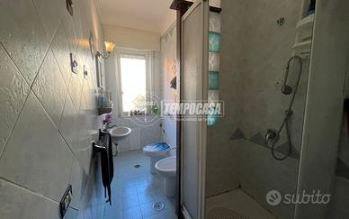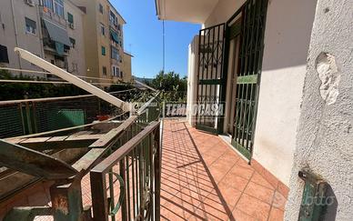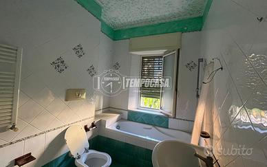 La soluzione posta al piano rialzato di una palazzina di due piani è attualmente composta da ingresso su salone, due camere da letto, una piccola stanza, due bagni e cucina abitabile con balcone.