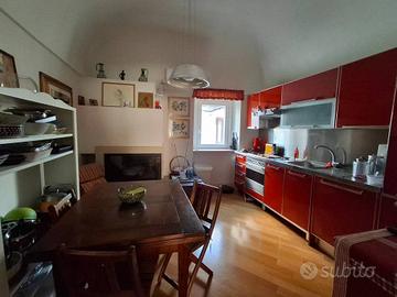 Rif:AVSS (126274977) - Prestigiosa dimora indipendente terra-cielo, sulla via principale del centro storico, proprio di fronte al vecchio Municipio, comprendente una luminosa ed accogliente zona abitativa di 120 mq tra primo e secono piano, composta in totale da sette vani più servizi ed annessi locali di 50 mq al piano terra (da adibire a studio/area relax/tavernetta), con ingressi indipendenti e comunicanti con l'abitazione. Completa lo stabile, un terrazzo con vista panoramica sui tetti ed i campanili del borgo antico. La proprietà si distingue per uno stile che racchiude fascino ed atmosfera accogliente. Caratterizzata da tipiche volte a botte, camino nella cucina al primo piano, è inoltre fornita di riscaldamento autonomo con termoarredi, condizionatore d'aria in alcuni ambienti, pavimentazione tra parquet, cotto e gres porcellanato effetto parquet.