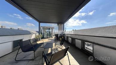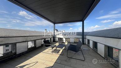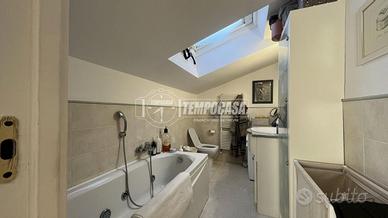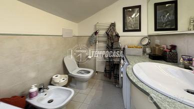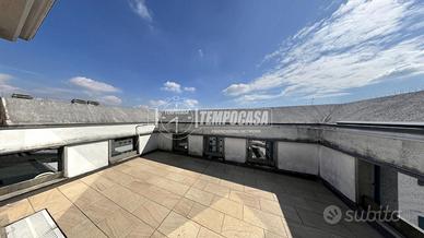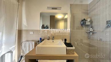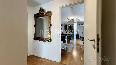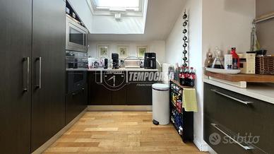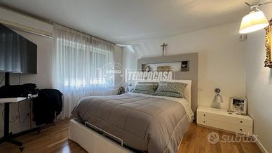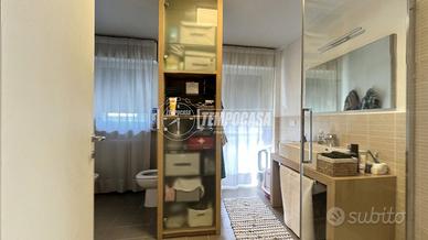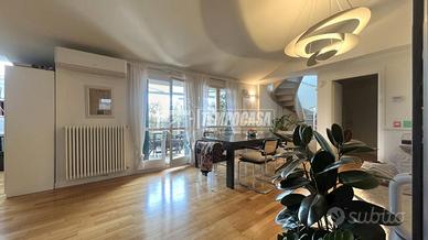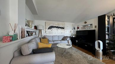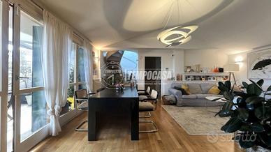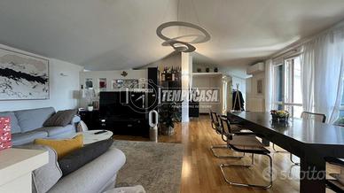 L'atmosfera unica dell'attico è completata dalla splendida vista panoramica, visibile salendo le moderne scale che collegano il soggiorno all'area superiore. La proprietà è completata da un box doppio e una cantina. Inoltre, il contesto residenziale offre una piscina e un campo da tennis, arricchendo ulteriormente la qualità della vita in questa splendida abitazione.