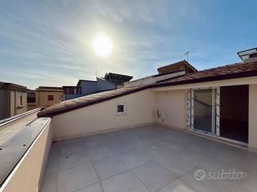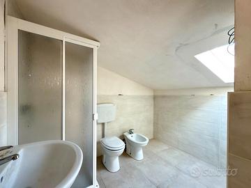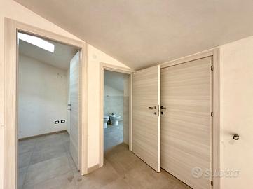 Dal soggiorno tramite scala a chiocciola si accede al piano mansardato di 45 mq. composto da un vano giorno con affaccio su terrazzo, cameretta, bagno con doccia, ripostiglio e un dietro stanza con ulteriore ripostiglio.