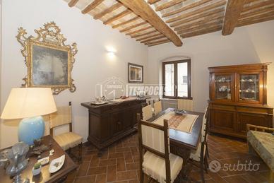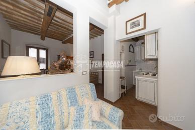 L'immobile presenta una metratura totale di 60 mq ed è composto da: ingresso, ampio soggiorno con affaccio sulla porta di San Pietro, cucina, sala da pranzo, bagno con doccia e ampia camera matrimoniale con vista su Assisi. Completa la soluzione una cantina al piano terra di 5mq con le utenze dell'acqua e della luce, scaffalata con piccolo scaldabagno e zona lavanderia.