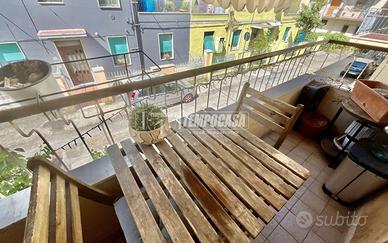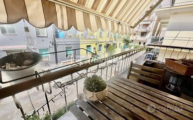 L'ingresso si apre su un ampio e accogliente living con cucina a vista, un ambiente studiato per massimizzare lo spazio e la luce naturale. Da qui si accede a un magnifico balcone abitabile, perfetto per cene all'aperto o momenti di relax, attrezzato con pratici tendoni che garantiscono privacy e riparo.