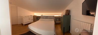 L'appartamento è composto da un primo piano e mansarda per un totale di circa 160 mq piu garage, un posto auto coperto in area di pertinenza privata con piccolo spazio verde e cancello motorizzato e ulteriori due posti auto in cortile.