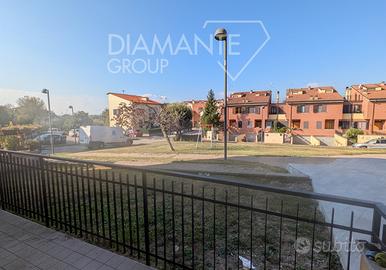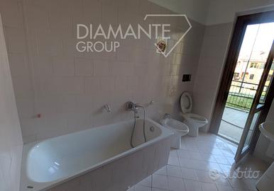Ingresso, soggiorno con terrazza, cucina abitabile con terrazza, due camere matrimoniali e due bagni di cui uno con vasca.