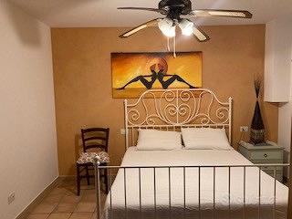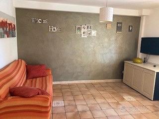 Elegante appartamento per 4 persone, situato al piano terra con giardino privato e posto auto in una zona residenziale, a soli 1000 metri dal mare. Arredato con gusto e curato nei minimi particolari, si compone di un ampio soggiorno con angolo cottura e divano letto matrimoniale, una camera matrimoniale e un bagno con doccia. Dotato di un ampio portico con tenda parasole, attrezzato con tavolo e sedie dove poter pranzare e cenare all'aperto. E' dotato di tutti i confort essenziali: Tv, lavatrice, microonde, forno elettrico, asciugacapelli. Disponibile da aprile.