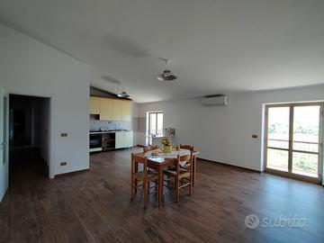 L'appartamento è composto da grande salone-cucina ambiente unico, due stanze da letto, e un bagno. Inoltre il balcone è comunicante con tutte le stanze della casa ed è dotato di climatizzatore ad aria caldo e fredda sia nel salone-cucina che nella stanza matrimoniale.