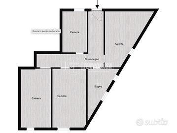 Composizione: la casa è composta da: disimpegno di ingresso, una cucina che può facilmente diventare un'ampia zona living moderna e funzionale, due ampie camere ed una terza di metratura inferiore (utilizzabile come studio), un bagno con doccia e vasca. Vi è inoltre, un magazzino, di proprietà, proprio accanto alla porta di accesso dell'immobile, comodo come ulteriore spazio di stoccaggio.