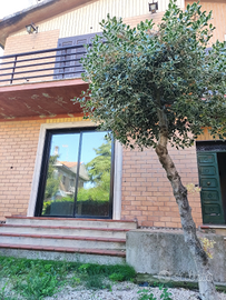 l immobile è parzialmente arredato , posto al piano rialzato con accesso facilitato da pochi gradini, offre una soluzione ideale per chi cerca comfort e praticità. Appartamento composto da : Un ampio soggiorno con accesso in giardino ,camera patronale con bagnetto , zona lavanderia e ripostiglio , ampia cameretta ,cucina abitabile, bagno con vasca idromassaggio ,giardino angolare con zona mattonata .