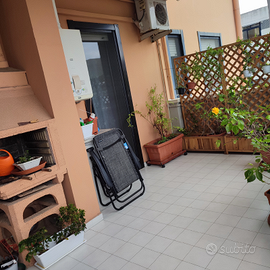 cucinino con angolo lavanderia. L'appartamento dispone di 4 condizionatori e ogni balcone è provvisto di impianto idrico. L'isolamento termico è dato oltre da pannelli isolanti nelle intercapedini dei muri esterni, anche da finestre e porte-finestre a taglio termico, doppi vetri e zanzariere. Esposizione a est e ovest e due ampi terrazzi provvisti di tende da sole nuove manovrabili dall'interno con telecomando, un balcone vivibile di 5 mt x 2 e un terrazzino. L'impianto di riscaldamento Riello a condensazione è di recente installazione. Un unicum tra le offerte della zona, vi sono anche 3 box di pertinenza (18+18+12), di cui 2 con serrande elettriche e telecomando, per un totale di 48 mq, per ospitare 2 grosse berline e 2 citycar, più eventuali ciclomotori; tutti e tre i box hanno presa elettrica e luce automatica. La posizione dell'immobile è a 200 mt dalla circonvallazione uscita 11 Poggiofranco.