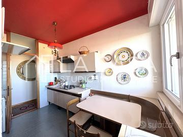 L'immobile è composto da tre camere da letto, cucina abitabile, soggiorno e due bagni recentemente ristrutturati. Gli ambienti risultano luminosi e ben distribuiti, con una vista panoramica.