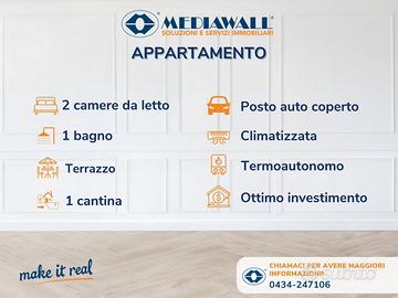 (Riferimento: BL-213-RV) Pordenone - laterale Via Oberdan (BL-213-RV) APPARTAMENTO LOCATO FINO AL 2027! INQUILINI REFERENZIATI! OTTIMA SOLUZIONE PER INVESTIMENTO! CONTRATTO IN CEDOLARE SECCA! Recente appartamento termo autonomo e climatizzato, semi arredato, sito all'ultimo piano di una piccola palazzina composto da soggiorno open space con cucina a vista, disimpegno, bagno finestrato con doccia e sanitari sospesi, camera matrimoniale, cameretta/studio, grande terrazzo/soggiorno, secondo terrazzo con centrale termica. Accessoriato di cantina e posto auto coperto. Possibilità di acquistare ulteriori posti auto scoperti nello stesso stabile.