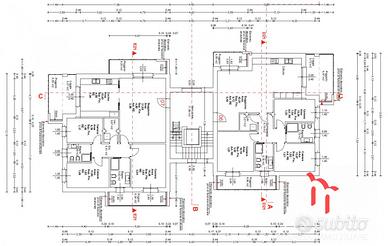 2) Appartamento al PIANO PRIMO/SECONDO e TERZO con una superficie totale di 105 mq. netti circa dispone di 3 terrazzi e ASCENSORE; si compone di ampia e luminosa zona giorno con affaccio su terrazzo a sud, una cucina separata con uscita sul terrazzo, un disimpegno, una camera matrimoniale con uscita sul terrazzo, 2 camere singole, due bagni entrambi finestrati ed una lavanderia.