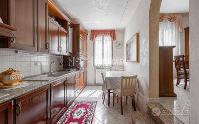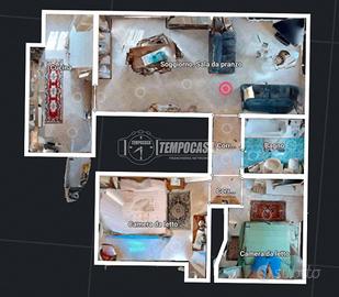 L'ingresso apre su un grande soggiorno doppio, perfettamente suddiviso in zona salotto e zona pranzo, affiancato da una cucina separata e abitabile. La zona notte è composta da due camere da letto, una matrimoniale e una tre quarti, oltre a un bagno finestrato.