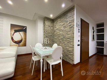 L'immobile è composto da ampio open space con cucina e salone, ripostiglio, due camere da letto, due bagni, cabina armadio nella camera matrimoniale e terrazzo perimetrale.