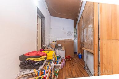 L'appartamento è composto da: ingresso su disimpegno, cucina, soggiorno, bagno finestrato con box doccia e una veranda che si estende lungo tutta la lunghezza dell'appartamento.