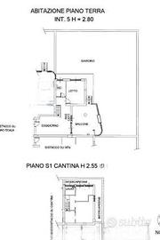 Il piano seminterrato è formato da due locali cantina adibiti a camere da letto, un ex ripostiglio e un ex lavatoio, entrambi trasformati in bagni.