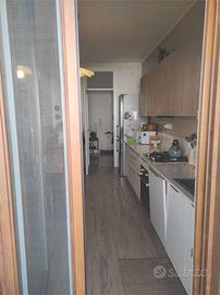 L'appartamento si apre su un ingresso ampio che permette di essere attrezzato. La cucina che apre su un terrazzino è separata e rimane arredata.