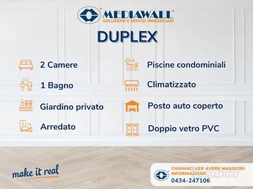 (Riferimento: BS-117-RV) Bibione - Villaggio Lido del Sole (Rif. BS-117-RV) APPARTAMENTO DUPLEX CON GIARDINO PRIVATO | 2 CAMERE DA LETTO | BAGNO FINESTRATO CON BOX DOCCIA | POSTO AUTO COPERTO DI PROPRIETA' | CLIMATIZZAZIONE IN POMPA DI CALORE | INFISSI IN DOPPIO VETRO PVC + SCURI | PISCINE E AMPIO VERDE CONDOMINIALE | IN PRONTA CONSEGNA | COMPLETAMENTE ARREDATA Proponiamo in vendita, all'interno del "Villaggio Lido del Sole" (dotato di piscine per adulti e bambini, curatissimo verde condominiale, aree giochi per bambini e custode condominiale e angolo comune dedicato al barbecue) questo splendido appartamento su due livelli con ampia porzione di giardino esclusivo di circa 100mq, dotato di ingresso completamente autonomo e indipendente. L'unità abitativa, edificata nel 1999, si sviluppa su circa 60mq interni, ha un doppio affaccio ad angolo ed è così composta: PIANO TERRA: ingresso con antistante portico, soggiorno con angolo cottura a vista PIANO PRIMO: 2 camere da letto che accedono ad un terrazzo comunicante, ed un bagno finestrato con box doccia; Completa la proprietà, l'annessa porzione di giardino al piano terra di circa 100mq ed un comodo posto auto coperto situato all'interno del garage interrato dell'edificio. Distanze principali: - 600mt dal mare; - 800mt dalle Terme; - 1,2km da centro. Finiture: infissi in PVC con doppio vetro camera e scuri in compensato marino, climatizzatore in pompa di calore. Le spese condominiali includono la manutenzione delle piscine, l'utilizzo dell'acqua fredda, la manutenzione del verde (comune e privato), oltre alla spesa relativa all'amministratore dello stabile e l'assicurazione condominiale. TUTTO L'ARREDAMENTO VIENE CEDUTO COMPRESO NEL PREZZO! Contattaci e scopri con noi questa soluzione pari al nuovo che ti permette di vivere al meglio le tue prossime vacanze estive o ti garantisce un sicuro e redditizio investimento.