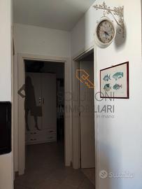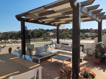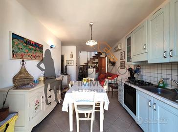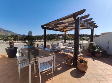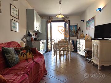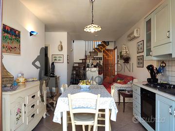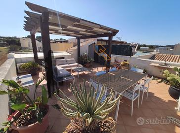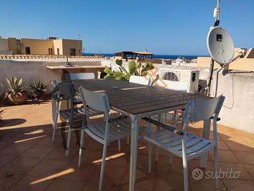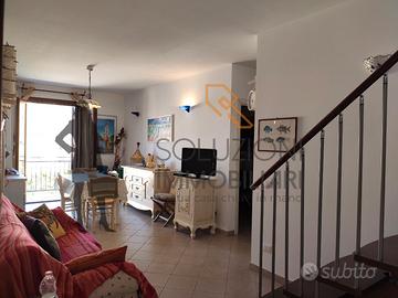 L'appartamento accessibile da una scala esterna è composto internamente al primo piano da cucina-soggiorno con balcone e scala per l'accesso in terrazza, disimpegno, comodo bagno con doccia e finestra e due camere da letto di cui una con balcone, il secondo piano da una meravigliosa terrazza calpestabile con vista mare composta da pergolato in legno, cucina in marmo e zona barbecue.