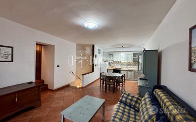L'abitazione si apre su un ingresso accogliente che conduce al piano superiore ad un luminoso soggiorno con cucina a vista, perfetto per trascorrere momenti di convivialità in un ambiente caldo e funzionale. Completa il piano giorno un balconcino panoramico, un bagno con box doccia, un pratico ripostiglio e la camera matrimoniale ampia e confortevole, con un'atmosfera intima e rilassante.