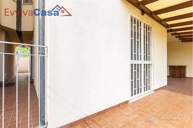 Il pergolato, spazioso e pavimentato, è un invito a vivere lesterno: colazioni lente, pranzi destate, cene con gli amici al tramonto.