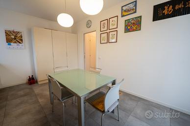La zona living presenta un ampio soggiorno, accogliente e ben illuminato da grandi finestre a tutta altezza con terrazzo abitabile esposto a Sud-Est, la cucina è abitabile e separata, ma può diventare una camera da letto, vista la doppia predisposizione degli impianti per la cucina nel salotto. Inoltre, è presente un bagno finestrato con doccia e un poggiolo.