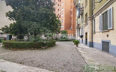 L'ingresso si apre su un comodo disimpegno, che accompagna nella zona giorno con cucinotto separato, affacciata sul cortile interno. La casa dispone di due ampie camere da letto, entrambe luminose e ben arieggiate, di cui una con accesso a un balcone. Il bagno finestrato, sviluppato in lunghezza, è funzionale e ben distribuito. Troviamo anche un ripostiglio molto capiente, perfetto come spazio contenitivo aggiuntivo.