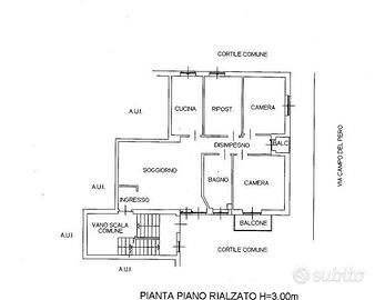 L'immobile è posto al piano rialzato di un condominio ed è composto da ingresso/soggiorno, cucina, disimpegno notte, due camere da letto, ripostiglio, bagno e duebalconi, con annessa cantina al piano seminterrato.