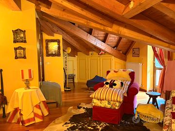 Appartamento su due piani living e cucina bagno e camera matrimoniale primo piano seconda camera al sottotetto con bagno tutto arredato su misura in quanto L appartamento è esagonale completo di 3 balconi box auto e 2 cantine riscaldamento autonomo non necessita di nessun lavoro pronto a essere abitato. A 3 minuti dagli impianti da sci di bn ponte di legno
