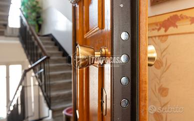 La porta di ingresso è blindata, gli infissi in doppio vetro.