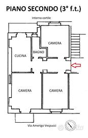 ASPETTI TECNICI: L'immobile gode di un'ottima luminosità data la doppia esposizione rispettivamente a sud su Via Vespucci e a nord su interno cortile. Infissi già sostituiti della marca FINSTRAL in PVC/vetro doppio in cucina e in bagno e in legno centinati nelle camere da letto. Caldaia a gas per il riscaldamento dell'acqua calda sanitaria e impianto di riscaldamento centralizzato a radiatori con termovalvole con un consumo medio annuo di 450 euro. Bassi costi di gestione che ammontano a circa a 950 euro annui.