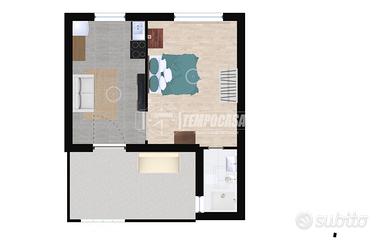 L'immobile è composto da un soggiorno, cucinino, camera da letto matrimoniale, bagno finestrato con box doccia, e un balcone verandato con tende da sole perfetto per ricavare uno spazio aggiuntivo. Conclude la proprietà una comoda cantina al piano interrato.