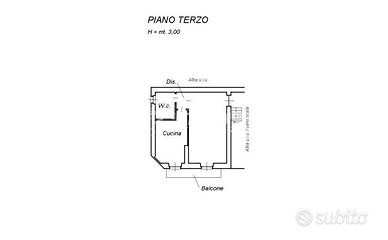 L'immobile è così composto: cucina, camera, bagno e balcone.
