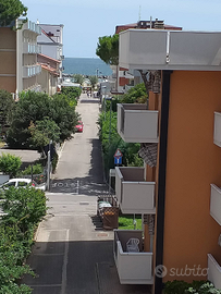 Appartamento trilocale, camera matrimoniale e cameretta al terzo piano con ascensore a 300 mt. dal mare con 2 balconi vista mare e posto auto privato