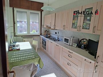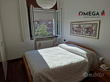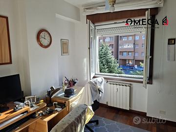 NUDA PROPRIETA' - Appartamento al piano alto in bel condominio degli anni '70 con ascensore che lo collega al garage senza barriere architettoniche. All'interno è un trilocale, composto da corridoio d'ingresso, cucina abitabile, soggiorno e terrazza abitabile di circa 7 mq. totalmente verandata e con vista aperta, 2 stanze da letto, bagno completo di doccia e vasca, ripostiglio, cantina in muratura al piano terreno. I serramenti sono in alluminio e PVC, i pavimenti della zona giorno in gres e delle camere in parquet, le porte in legno. Esposizione totalmente a sud, molto soleggiato anche d'inverno. Triplo climatizzatore. L'usufruttuario ha 82 anni.