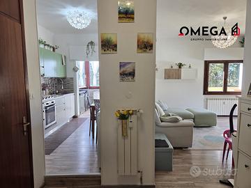 Appartamento in ottime condizioni, ristrutturato da pochi anni e luminosissimo, inserito in un contesto di zona molto tranquilla e riqualificato da pochi anni dal Superbonus. E' un grande trilocale al piano basso, con sala e cucina abitabile collegate anche esternamente da una lunga terrazza (in cui è inclusa una veranda che funge da lavanderia) ad angolo esposta sul verde, due camere da letto, due bagni con wc e con finestra, ripostiglio interno e cantina in muratura. Oltre al posto auto assegnato in area condominiale c'è una strada privata che permette di parcheggiare altre auto. Gradevole e funzionale l'arredo che viene lasciato all'interno dell'alloggio; i materiali sono moderni, il pavimento è in parte in listoni di legno prefinito in parte il listoni di gres, la porta d'ingresso è blindata, i serramenti in PVC con effetto legno, l'impianto elettrico è rifatto. C'è già la predisposizione per l'installazione del climatizzatore e in soggiorno c'è un bel caminetto ecologoico a etanolo.