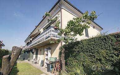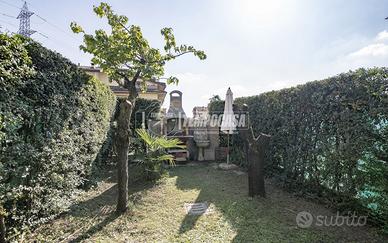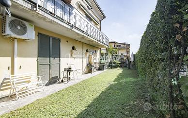 TRILOCALE CON DOPPIO GIARDINO E BOX! Albignano - In contesto di poche unità abitative, vicino al sottopasso del paese che ci porta vicino a tutti i servizi di prima necessità proponiamo in vendita trilocale con doppio giardino e box. Per accedere all'interno dell'appartamento non ci sono barriere architettoniche e la soluzione è composta da una luminosa ed ampia zona giorno suddivisa in soggiorno e cucina a vista da dove si puo' accedere al primo sfogo esterno della casa esposto ad est; tramite corridoio si arriva nella zona notte disposta in camera matrimoniale, una seconda camera ad oggi divisa in due ambienti tramite un muro rimovibile e bagno con vasca. Da tutti e tre i locali si accede al secondo giardino della casa, in parte piastrellato, con un elegante angolo barbecue da utilizzare nelle belle giornate con parenti ed amici. A completare la soluzione troviamo box e cantina. Gli infissi della casa sono in doppio vetro/alluminio con annesse zanzariere ed inferriate, inoltre sono presenti tre split dell'aria condizionata. ASSOLUTAMENTE DA VEDERE!