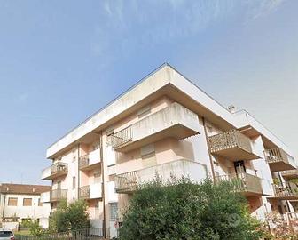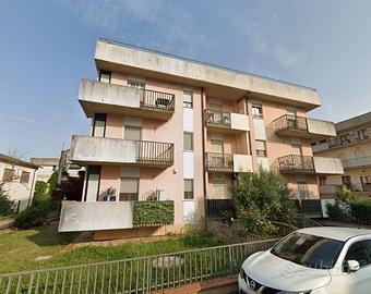 L'immobile è posto al secondo piano ed è cosi composto: ha lingresso frontale salendo la scala condominiale e risulta composto da: ingresso/soggiorno con zona pranzo e angolo di cottura, corridoio/disimpegno, studio, due camere, studio, bagno, WC e due balconi a livello di cui uno con accesso dalla camera ad angolo ed uno dai locali studio e soggiorno. Il garage è posto al piano primo sottostrada per una superficie di circa 33mq.