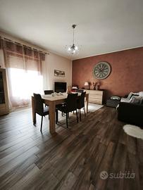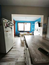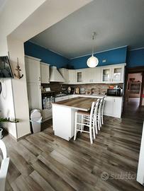 140 mq ben distribuiti: ampio ingresso, cucina doppia con piacevole vista e terrazza chiusa a vetri, pratico riposto, due bagni, due camere da letto, una cameretta e un salone grande e luminoso con balcone.