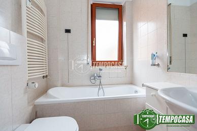 La zona notte si sviluppa con due ampie camere matrimoniali, entrambe confortevoli e ben illuminate, e un bagno finestrato con vasca, pratico e funzionale.