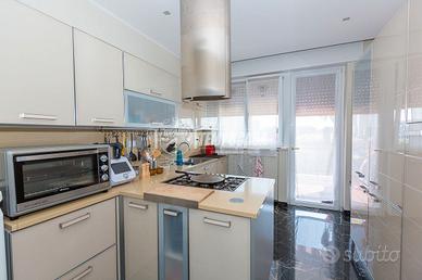 In posizione comoda e servita, proponiamo in vendita un appartamento di 150 mq complessivi, completamente ristrutturato, attualmente suddiviso in due unità abitative indipendenti. Una soluzione ideale sia per famiglie numerose che per chi desidera un investimento versatile e pronto da vivere. La prima unità, posta al quarto piano, si sviluppa su due livelli: l'ingresso apre direttamente sul soggiorno con cucina a vista, luminoso e con accesso al balcone. La zona notte comprende una camera matrimoniale e un bagno finestrato. Presente anche un ripostiglio ad uso Lavanderia. Al livello superiore si trova una mansarda accogliente, oggi utilizzata come studio e/o camera degli ospiti, perfetta per chi cerca spazi aggiuntivi e funzionali. La seconda unità offre una disposizione altrettanto interessante: un soggiorno ampio con accesso diretto al terrazzo, ideale per momenti di relax all'aperto; una cucina abitabile separata, una camera da letto con balcone privato e un bagno padronale finestrato. L'intera proprietà è dotata di aria condizionata e di riscaldamento centralizzato, con spese condominiali di circa 3.000 € annui, comprensive della gestione dei servizi comuni. A completare l'offerta, un valore aggiunto di grande rilevanza: due cantine e due garage, che garantiscono comodità, spazio e funzionalità. Grazie alla recente ristrutturazione completa, l'immobile si presenta in perfette condizioni, pronto per essere abitato senza necessità di ulteriori interventi. La particolarità della doppia unità lo rende estremamente flessibile: può essere vissuto come un'unica grande abitazione di rappresentanza, mantenuto separato per ospitare più nuclei familiari, oppure sfruttato in parte come investimento. Una soluzione rara, elegante e versatile, con ampi spazi interni, terrazzi vivibili e pertinenze importanti: l'ideale